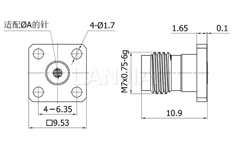 商品描述:2.4mm straight flange connector,50GHz
