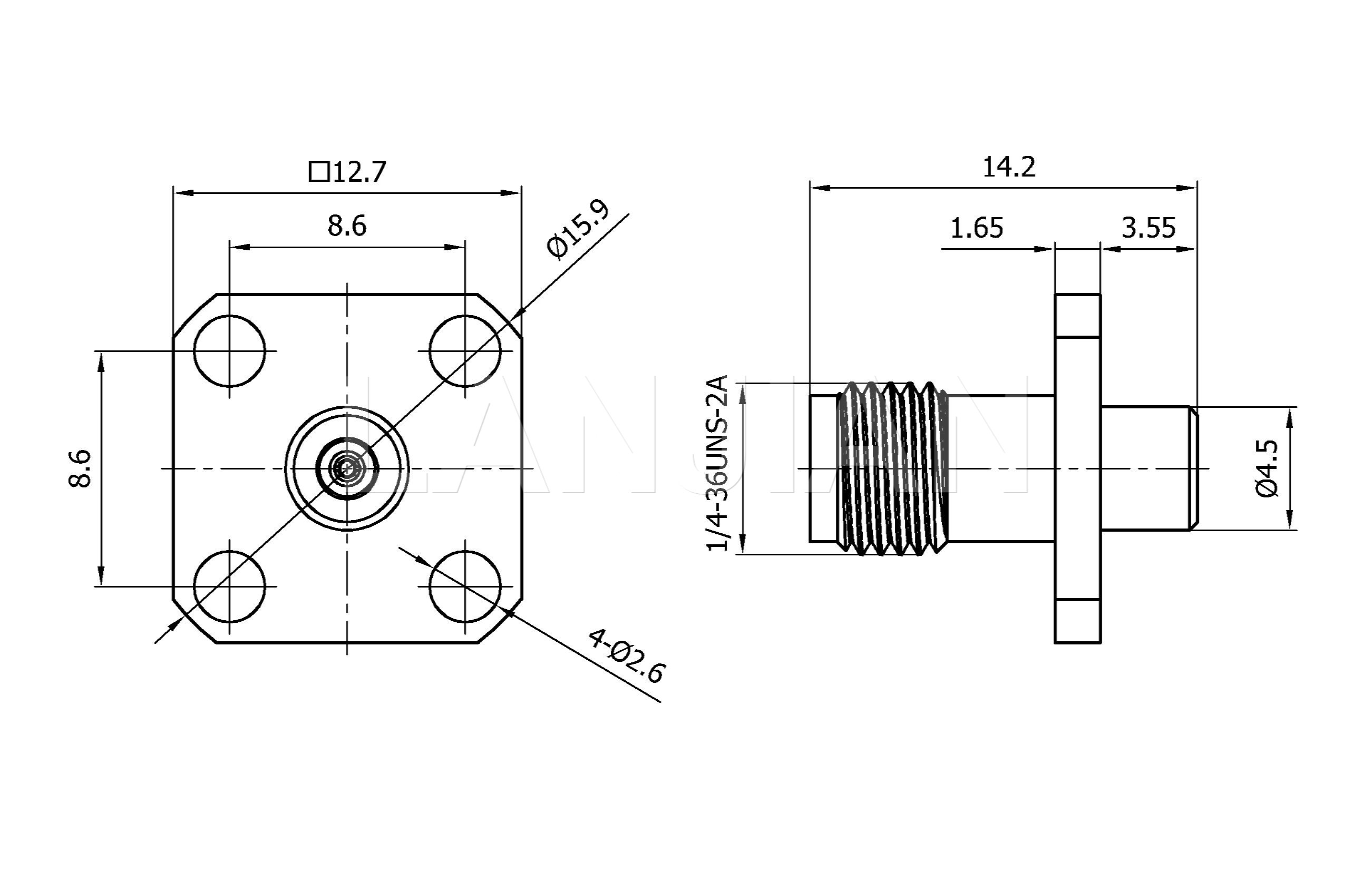 商品描述:2.92mm straight jack flange connector,40GHz